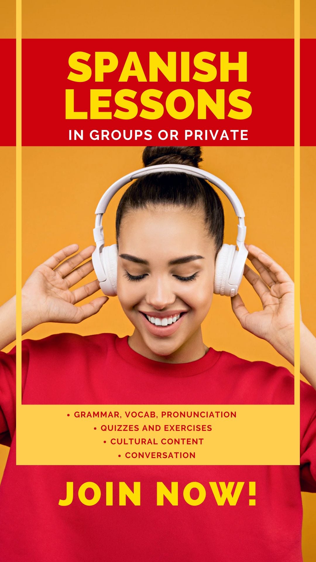 Our Spanish lessons guide you from beginner to advanced levels with expert instruction from native, experienced teachers. Designed to build confidence and fluency, the classes focus on practical conversation, grammar, and cultural insights to accelerate your language mastery. Perfect for learners aiming to communicate effectively in real-world situations.